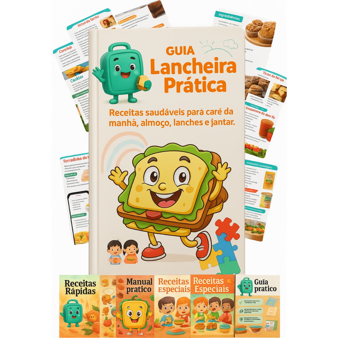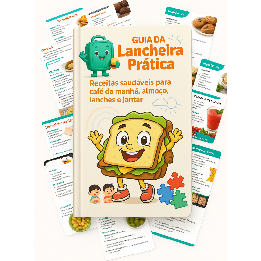 Se te falta criatividade ou tempo pra planejar cardápios, o guia traz receitas organizadas, cardápios completos e até listas de compras prontas.